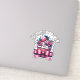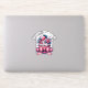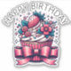 Gráfica de un quequito de fresa rosa con flores y un arco.