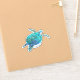 Este pegatina de verano, inspirado en la playa, cuenta con una bonita tortuga acuática azul en un salpicón de olas oceánicas. El pegatina es personalizado cortado a la forma de la tortuga.
