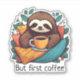 ¿Eres un amante del café que disfruta de un estilo de vida acogedor y relajado? Nuestro adorable perezoso Pero el primer pegatina de café es perfecto para usted! Con una linda pereza rodeada de cómodas almohadas y saboreando una deliciosa taza de café, este pegatina le hará sonreír y le recordará su amor por esa primera taza de café de la mañana.