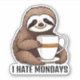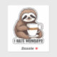Presentamos a nuestro adorable pegatina "I Hate Mondays" con una linda pereza bebiendo una taza gigante de café! Perfecto para todos los amantes del café y para todo aquel que lucha con esos temidos lunes por la mañana. Este pegatina vinílico de alta calidad no sólo es duradero, sino que también le añade un toque de humor y cortesía a sus pertenencias.