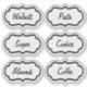 Sencillo pegatina enmarcado de color negro, con un fondo transparente. Personalizar o personalización con texto o palabra de su elección y póngalos en sus vasijas de cocina.