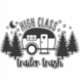 Un remolque de viaje de vaina bajo la luna, estrellas y corazones con verduras y la palabra "basura de remolque de alta clase".