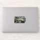 A battery shaped sticker with a beautiful view of the top of a forest with the reminder to recharge your own battery.