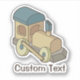 Icono del tren de juguete de madera en paleta de color vintage. Texto personalizado.