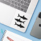 Triple el tiburón. El arte gráfico vectorial se coloca en el pegatina cuadrado tres veces para que tengas tres tiburones nadadores separados. El diseño es un tiburón nadador. Puedes cambiar el tamaño de los tiburones si quieres crear una escuela de tiburones. Regalos para la gente que ama el mar.