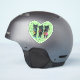 Este pegatina de vinilo tiene tres gatos negros con ojos verdes tocando música con un violín, guitarra y saxofón con ropas coloridas en rosa, azul y verde sobre un corazón verde claro lleno de varias notas musicales negras.
