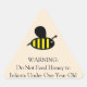 Icono de abeja de burbujas en amarillo y negro con el infante de miel "Advertencia: No Alimente Miel a los Infantes Menores de Un Año" sobre un fondo blanco y antiguo de vara dorada. Añada pegatinas a la tapa superior o al costado de las jarras de miel, botellas de plástico y otros recipientes. Coordine con nuestra etiqueta de datos de nutrición de miel con una gama de colores a elegir en diferentes "Temas de diseño". © dotpatternn