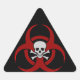 Símbolo de riesgo biológico con cráneo y huesos cruzados en rojo y negro.