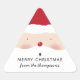 Merry Christmas Santa Cute Fun Personalized Name Pegatina incluye una linda cara de Santa hat y tu mensaje y nombre personalizados en la base. Perfecto para regalos de Navidades, favores de navidades, sobres de tarjetas de Navidades y más. Creado por Evco Holidays www.zazzle.com/store/evcoholidays