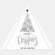 Árbol de Navidad moderno de bola de plata, estrellas y las palabras Feliz Navidad con letras de moda, usar estos hermosos pegatinas triangulares personalizados para regalos, sellos para sobres, favores de fiesta o cualquier ocasión de Navidad.