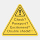 A playful funny warning birthday sticker designed as a yellow caution triangle to build excitement and anticipation.