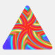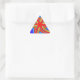Un diseño o patrón geométrico atractivo predominantemente en tonos rojos y azules, pero también con amarillo, cian, púrpura y verde.
