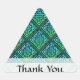Un conjunto de pegatinas triangulares de "Gracias" con un diseño de nudo celta azul-verde repetido en forma de diamante sobre un fondo negro. O, personaliza "Gracias" con tu propio mensaje. También disponible en otras formas!