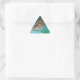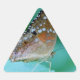 Pegatina Triangular Hermosa mariposa Danaus Plexippus en hojas.
