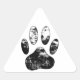 Pegatina Triangular Impresión de garras de perro negro y blanco