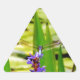 Pegatina Triangular Loto de la libélula y flor púrpura