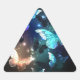 Fabuloso, brillante, azul y amarillo, mariposa nocturna sobre fondo oscuro.