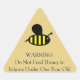 Icono de abeja de burbujas en amarillo y negro con el infante de miel "Aviso: No alimente miel a niños menores de un año" sobre un fondo dorado de miel. Añada pegatinas a la tapa superior o al costado de las jarras de miel, botellas de plástico y otros recipientes. Coordine con nuestra etiqueta de datos de nutrición de miel con una gama de colores a elegir en diferentes "Temas de diseño". © dotpatrón