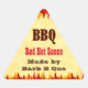 Un pegatina editable con letras ardientes que leen BBQ y texto personalizado en letras occidentales, para salsas calientes caseras, rizos, salsa u otras recetas calientes en llamas con arte gráfico de llamas rojas y naranjas alrededor del diseño sobre un falso fondo pergamino.