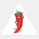 Caricatura de pimienta roja y caliente. Diseño original. pegatinas del triángulo personalizado. Idea de regalo.