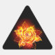Rosa en llamas del fuego y la llama sobre fondo negro.