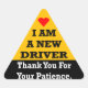 Pegatina de advertencia simple. "Soy un nuevo conductor, gracias por su paciencia.