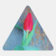 Pegatina Triangular Tulipán rojo sobre pizarra gris azul