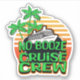 Pegatina divertida de TRIPULACIÓN DE CRUCERO SIN CERVEZA para viajes vacacionales, especialmente diseñada para fiestas de viajes cristianos o alcohólicos en recuperación que celebran en un crucero. El diseño muestra un barco de crucero con tipografía en negrita, palmeras y puesta de sol vintage. Gran pegatina de crucero para alegrar tus objetos.