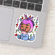 A sticker filled with festive confetti, colorful and bright flowers, and fun, joyful sticker. Perfect for a collection as part of any collectible sticker. Very unique.