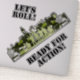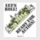 El tema de este conjunto de pegatinas es "Urban Camo". El pegatina central tiene una silueta de una fila de soldados frente a un paisaje urbano de camuflaje. Los otros dos pegatinas incluidos en este conjunto son textos que se pueden cambiar a sus propias palabras. El primer texto es, "¡VAMOS!" y el segundo pegatina es, "¡LISTO PARA LA ACCIÓN!".