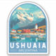 Diseño de viaje de vector retro de Ushuaia. Es una ciudad turística de Argentina. Se encuentra en el archipiélago de Tierra del Fuego, la punta más meridional de América del Sur, apodado el "Fin del Mundo".