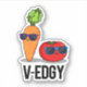 El V-Edgy Funny Veggie Pun presenta una zanahoria y tomate que se ven realmente fríos y nerviosos con sus agujereadas gafas de sol. Gracioso regalo de Pun para la familia y amigos que aman los juegos de verduras.