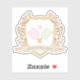Este diseño pegatina tiene una acuarela de un escudo rodeado de ramas con remo de pickleball de gingham rosa en el centro. El texto dice "Vamos a golpear la corte". Los colores utilizados son el verde musgo, el rosa rubor y el bronceado.