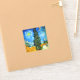 Pegatina con la pista de pintura al óleo de Vincent van Gogh con Cypress y Star (1890), también conocida como Country Road en Provence por la noche. La gente camina por un camino que pasa por un hermoso ciprés bajo un cielo azul nocturno con luna amarilla y estrellas. Un regalo fantástico para los aficionados al post-impresionismo y al arte holandés.