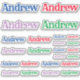 Pegatinas coloridos de diferentes tamaños con el nombre cristiano Andrew.