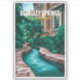 Diseño de viaje vector retro Berkeley Springs. Ubicada en las montañas de Virginia Occidental, Berkeley Springs ha atraído a los visitantes a sus manantiales naturales y a su cultura artística única.