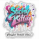 "Vibrante, juguetón y arriesgado, el logo de Sticky Kitty encarna el encanto urbano. Los tonos rosa, azul y lila bailan a través del guión cursivo, acentuados por goteos dinámicos que agregan un toque de travesura. "La imagen original fue generada por Meta AI. La IA generó obras de arte. Con licencia CC BY-SA 4.0. No se aplican restricciones adicionales a los derechos de autor".