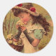 Pegatinas en forma redonda ~ Bonito Victoriano Vintage en Pinafore y Gorra... disfrutando de la naturaleza y recogiendo flores silvestres... ¡genial para guardar recortes, artesanías y papelería! ¡Disfruten De La Vida Y Gracias Por Pararse!