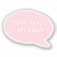 ¡Escuadrón de introvertidos unidos! ¡Alerta pegatina! Escapar de la FOMO, sumergirse en la pequeña charla, sacudir esta corbata rosa rubrosa: "Vine, vi, me fui temprano". ✌️ Perfecto para: Introvertidos en la marcha (IRL o en tu mente) Recargadores de baterías sociales Cualquiera que ame una buena risa (y una salida temprana) Abróchalo en tu laptop, botella de agua, o en cualquier lugar que necesites un recordatorio: ¡Lo haces! #introvertidoLife #earlyescape #blushpinkvibes #stickerlove #fomoisover #selfcarevibes