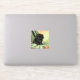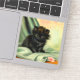 ¡pegatina con un gatito negro adorable! El gatito de ojos verdes se sienta en una manta con una flor rosa. ¡Un bonito regalo para los amantes del gato y del arte victoriano!