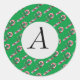 Este pegatina tiene un patrón dulce hecho de latas de caramelo vintage. Tiene rayas clásicas rojas y blancas y está envuelta en un gran arco verde. El fondo verde se puede personalizar y se pueden agregar sus propias iniciales.