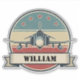 This personalized vintage sticker features a classic distressed badge with a detailed front view of an F-4 Phantom fighter jet, set against a retro circular background with red stars and a custom banner below.