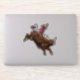 Este vintage vintage vaquero montado en un toro balbuceador está inspirado en el arte occidental. Ideal para fiestas y coleccionistas con temática de vaquero.