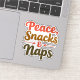 Channel 1970s sunshine with our retro typography design "Peace, Snacks & Naps" – featuring groovy rounded letters in warm sunset tones. Deck out laptops, water bottles & notebooks!