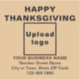 ¡Feliz Día de Acción de Gracias! Festividad para celebrar este noviembre para agradecer por las bendiciones que recibimos. También es una de las vacaciones para promocionar su negocio. Pegatina de vinilo cuadrado con el saludo de Acción de Gracias, su nombre comercial y otra información de su negocio. Puede utilizarlo como accesorio de su material de embalaje de producto. También puede utilizarlo como material de marketing para promocionar su negocio o promocionar su marca a clientes o clientes. pegatina de personalizable que puede utilizar para crear conciencia de marca. Los colores de diseño son textos negros y marrones oscuros sobre fondo marrón claro. Para personalizar de este pegatina, cargue el logotipo de su empresa, escriba su nombre de negocio, dirección y número de teléfono. Compruebe la apariencia después de cargar el logotipo y escribir textos. Si la apariencia le resulta agradable, puede realizar su pedido ahora. Si necesita cambiar el tamaño y mover el logotipo y los textos para que encajen en este pegatina o en el tamaño que elija, por favor cambie la herramienta de diseño. También puede realizar otros cambios en la herramienta de diseño según la apariencia de este pegatina que prefiera, como cambiar el color de fondo, el color del tipo de letra y el estilo del tipo de letra. ¡Feliz Día de Acción de Gracias! Te deseo más ventas esta fiesta.