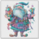 Un alegre Santa, adornado con vibrantes tonos violetas, sostiene regalos coloridos en ambas manos, irradiando alegría navideña.