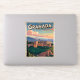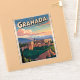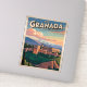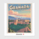 Retroceder en el tiempo con este afiche de viajes de estilo vintage de Granada, España. Presenta la emblemática Alhambra y las montañas de Sierra Nevada en cálidos colores andaluces. Perfecto para viajeros, amantes de España y aficionados al arte de viajes retro.