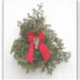 Una bella corona de Navidades con un arco rojo en un granero