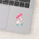 Caminando en el ilustracion del pegatina lluvioso del artista y diseñador de superficies Deb Jeffrey. Colores - viva magenta, el color del año para 2023 ©2023 Deb Jeffrey - Todos los derechos reservados