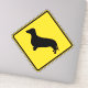 Una señal amarilla del cruce de dachshund.